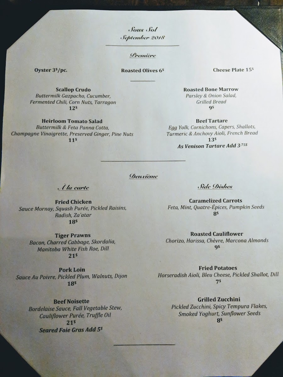 Located in the heart of Winnipeg, Sous Sol offers an exquisite blend of culinary delights and a captivating ambiance. The menu showcases an array of thoughtfully crafted dishes that highlight both local and seasonal ingredients, ensuring a memorable dining experience.