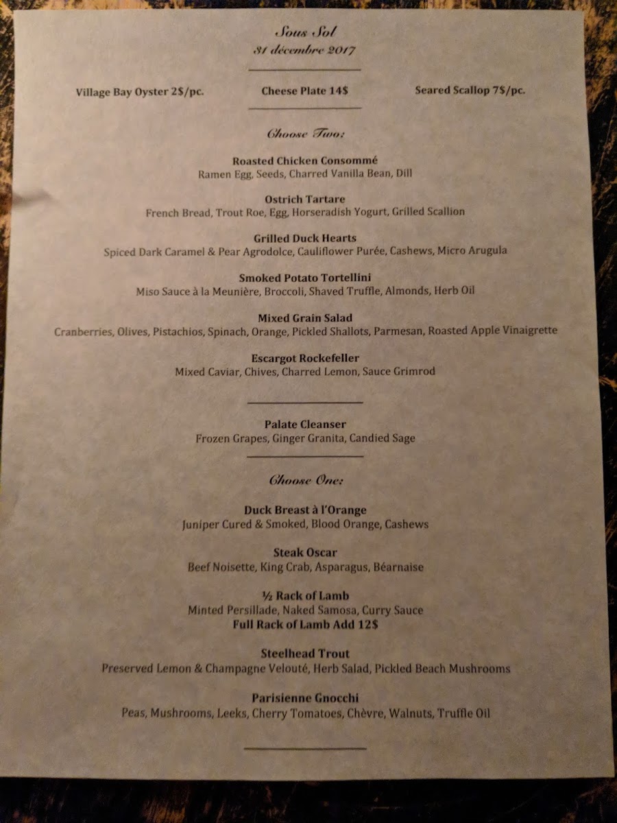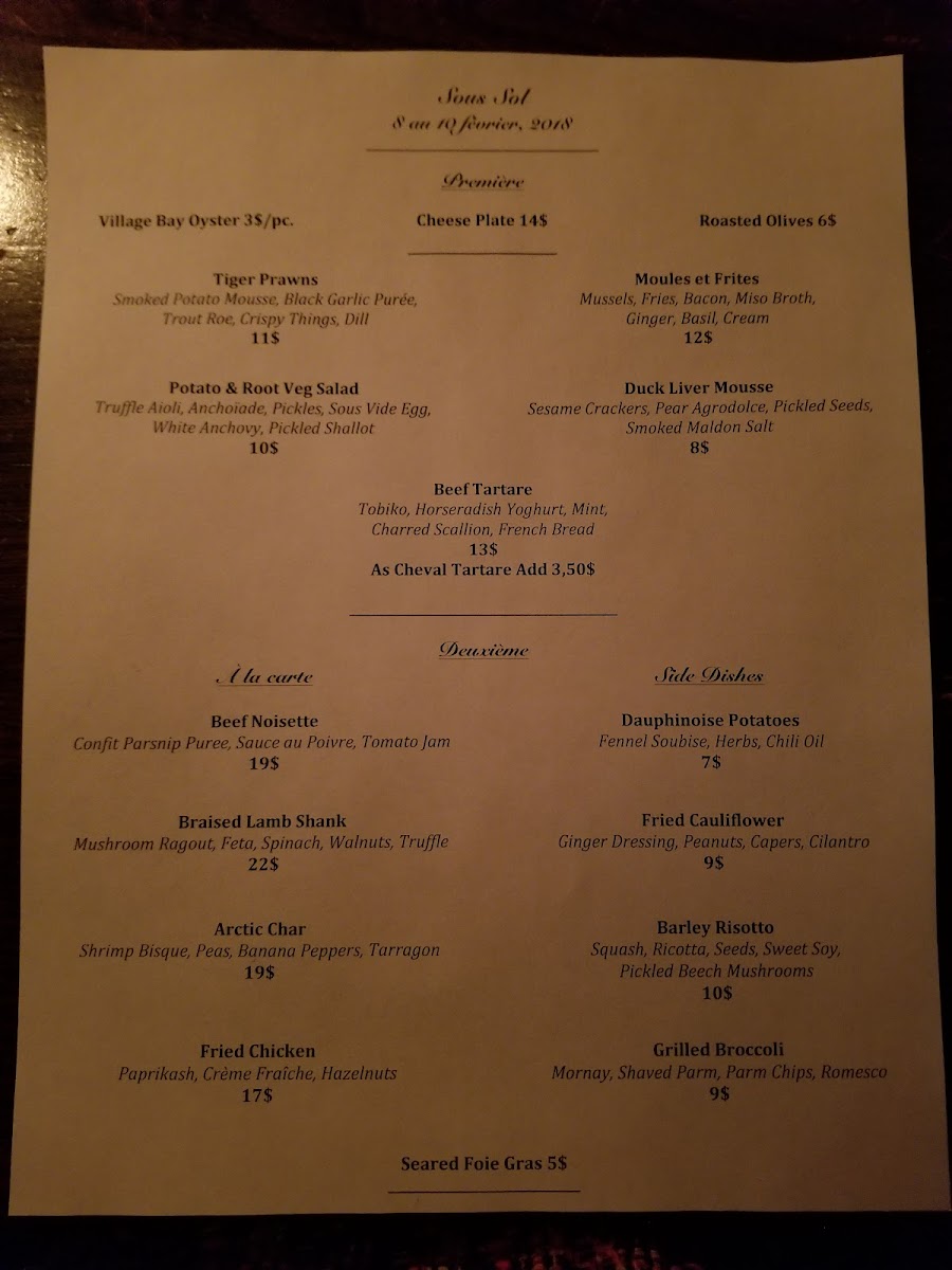 Introducing the Menu: Sous Sol